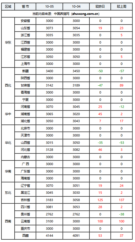 外三元排行后三:西藏自治区10.53元/公斤、新疆维吾尔自治区11.10元/公斤、青海省11.10元/公斤;