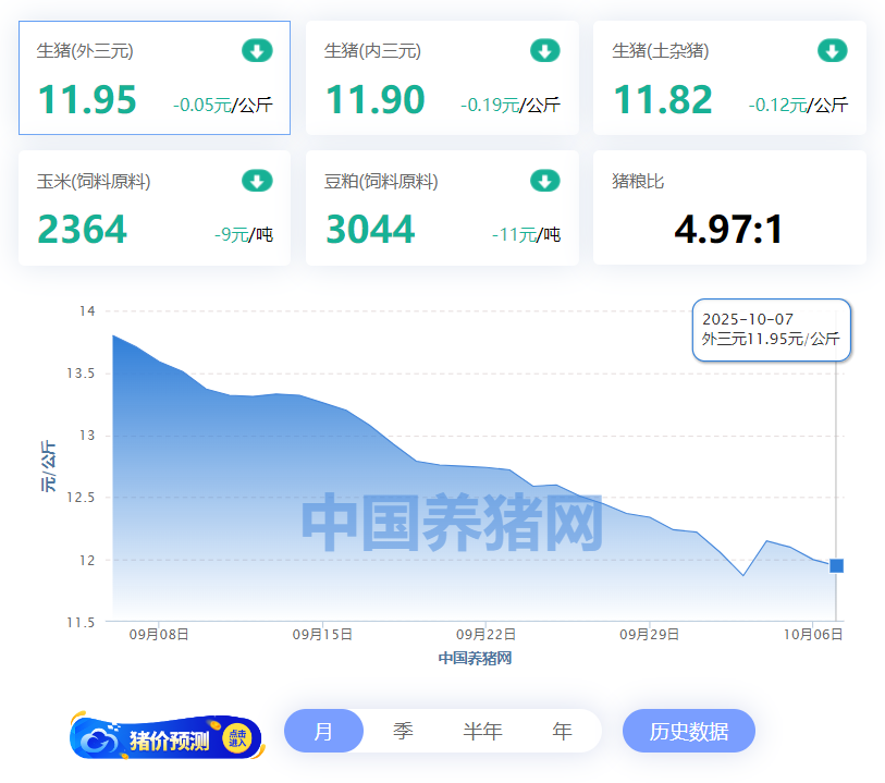 2025年10月08日-中国养猪网玄田算法预测明日猪价