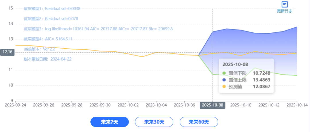 玄田算法是由项目课题组团队原创的非经典逻辑数值聚合理论和不确定性预测方法,构建了基于一致模算子的生猪价格预测模型。该模型采用的聚合函数及一致模相关理论与方法已获得多项国家自然科学基金和省级自然科学资金资助,并获得多项省级自然科学奖奖项。10月08日预测猪价为12.0867,置信区间在10.7248--13.4863之间。10月09日预测猪价为12.1483;10月10日预测猪价为11.9416。2025年10月07日,外三元平均价格跌至11.95元/公斤,较昨日下跌0.05元/公斤。今日全国生猪价格整体呈弱势运行态势,供应端压力持续主导市场,前期产能恢复带来的适重猪源充足,规模化企业为完成销售目标保持增量出栏,叠加养殖户前期压栏后信心崩溃、集中抛售大猪,市场供应量短期难以收缩。目前养殖行业已进入亏损区间,中小散户开始减少出栏,但规模化企业出栏节奏未改。国家启动中央冻猪肉收储,一方面直接减少市场流通量,另一方面释放稳价信号以提振市场信心,但短期难以扭转供强需弱的格局。短期猪价仍将维持震荡偏弱走势,后续需关注养殖端产能去化进度及后期腌腊等季节性消费启动带来的需求变化。
