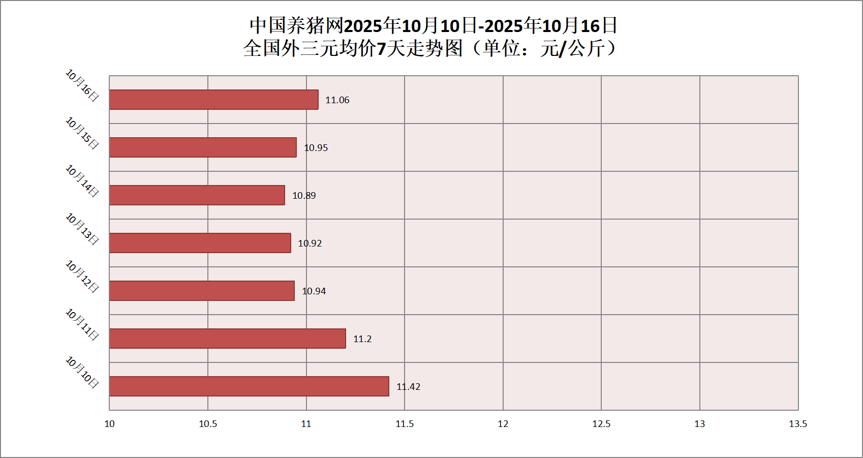 2025年10月10日-2025年10月16日(7天)外三元均价走势图