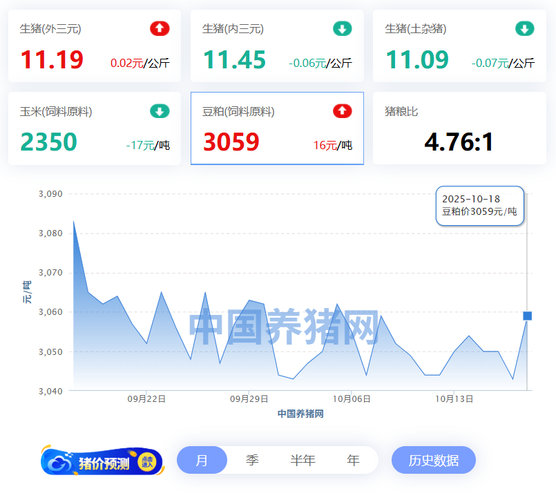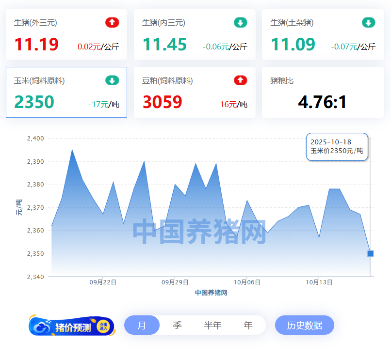 今日全国生猪收购均价为11.19元/公斤,环比小幅上涨0.02元/公斤,涨幅虽不大但已结束前期的跌势。近期养殖企业大量出栏导致供应上升,是前期价格下跌的主要原因。随着二次育肥补栏力度提升,市场供应压力有所缓解,推动价格回暖。东北二育规模小、放养企业少,使得当地价格相对坚挺;而广西等南方地区供应充足,价格偏低。进入肉类交易旺季,气温下降会提升肉类需求,预计有助于止跌企稳。未来几天若二育补栏力度保持,且大规模出栏未出现突发增加,猪价有望在当前区间小幅波动或继续小幅上扬。若出现大规模集中出栏或外部需求下降,价格仍可能出现回调。