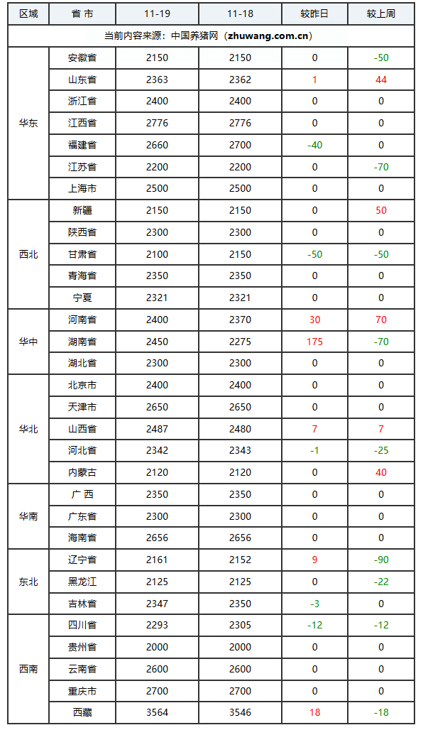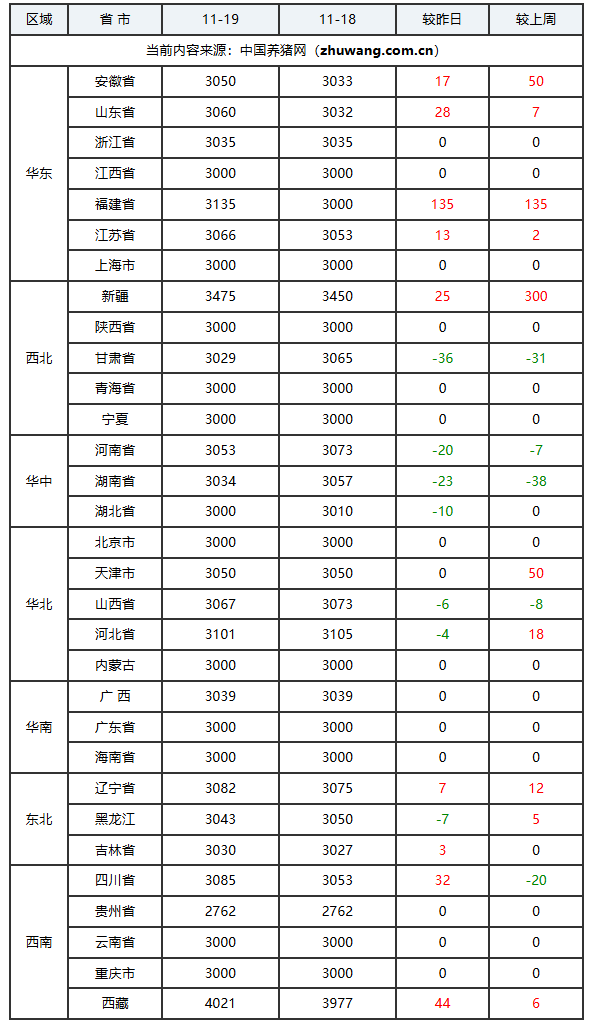 猪价持平地区(3个):四川省、广西壮族自治区、宁夏回族自治区;