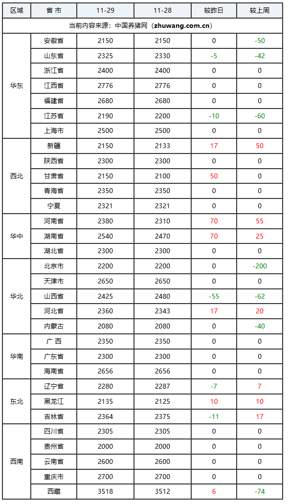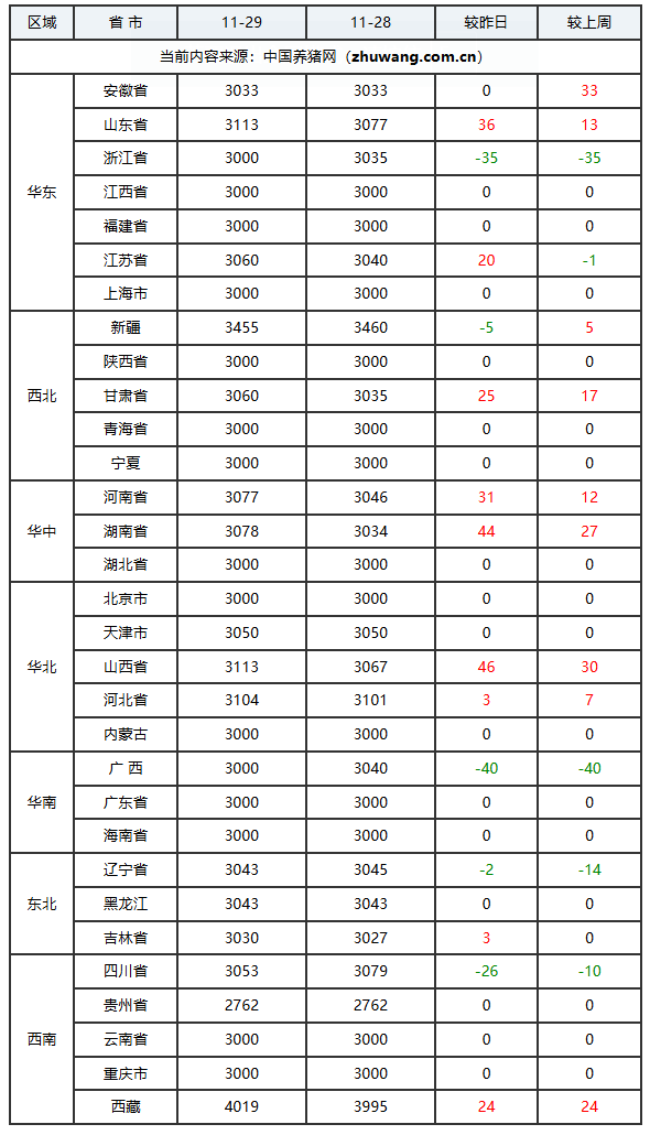 猪价持平地区(1个):宁夏回族自治区;