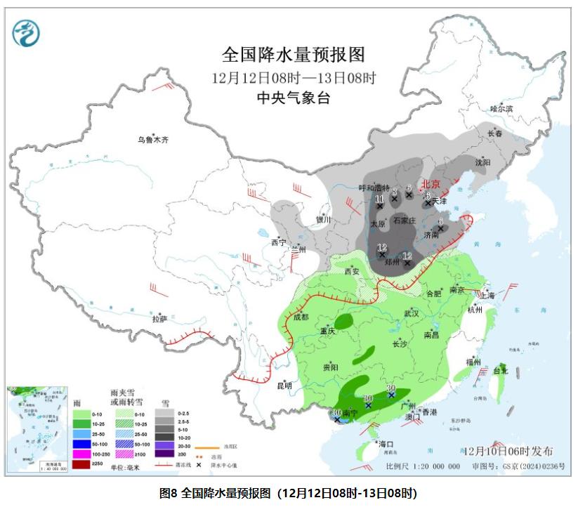 12月进入中旬,今天至13日,新一轮寒潮来袭,将影响我国大部地区,受此影响,南北多地气温也将刷新下半年以来低值,且,多地也将迎来今年冬天的初雪。尤其是,此次寒潮天气与暖湿气流配合,中东大部将迎来降水,其中,华北以及黄淮部分地区将出现大雪,局地暴雪的天气过程!