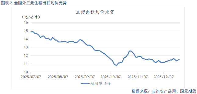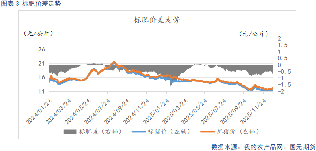 临近春节,腌腊进入高峰期,春节备货也将开启,短期市场支撑因素逐步显现。养殖端看涨惜售情绪升温,叠加猪价持续低位,二育补栏积极性上升,为短期猪价提供托底力量。不过,能繁母猪存栏虽已出现去化迹象,但供给压力实际缓解要到26年下半年逐步兑现,短期生猪供应压力仍将持续释放,且二次育肥本质上仅延迟出栏时间,并未减少整体供应,反而导致供给后置,进一步加大春节备货期间的供给压力。供强需弱格局短期难以扭转,阶段性反弹空间有限。盘面上来看,主力2603合约受春节后需求淡季与供应持续释放的预期影响,虽有阶段性反弹预期,但整体承压趋势不变。1月市场核心在于春节备货需求的实际释放力度与二育的出栏节奏,而能繁母猪存栏去化进度则是决定中长期市场拐点的关键变量,需持续重点关注。
