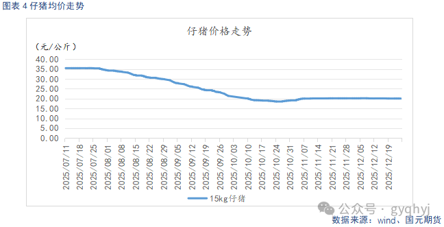 截至12月25日,仔猪出栏均价20.04元/公斤,较上月末环比下跌0.09元/公斤。猪市低迷,市场补栏意愿较弱,仔猪价格持续低迷。随着仔猪进入低价区间,低价补栏意愿略有上升,仔猪价格低位持稳运行。