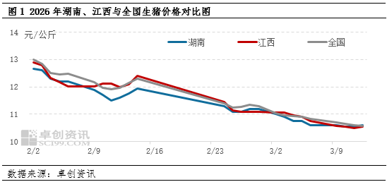 综合来看,短期内养殖端出栏压力仍存,叠加消费(883434)淡季延续、二次育肥补栏积极性或不及预期,市场供过于求格局难有明显改善。卓创资讯(301299)预计3月中下旬湖南、江西生猪价格或以偏弱运行为主,大幅反弹动力不足。