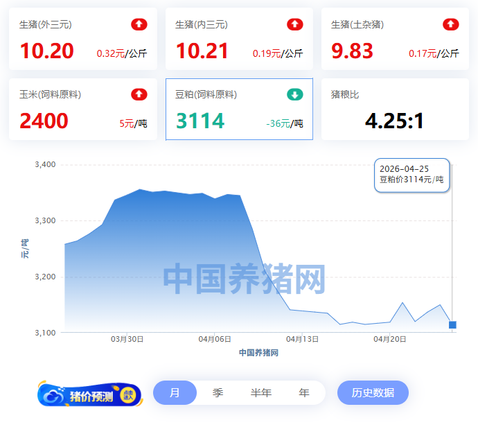 当前猪价重心上移,市场看涨情绪升温,4月末或维持易涨难降的翘尾态势,但此番上涨并非反转,后市仍存转弱压力。供应端,集团猪企月末出栏计划减少,养殖端惜售挺价,社会面流通收缩,屠宰场采购难度增加;临近五一小长假,备货需求提振观望心态,加之亏损压力下认卖意愿低迷。需求端,屠宰场开工率走高,分割入库与二育补栏标猪意愿增强,节日效应带动鲜品购销回暖,下游备货需求逐步释放。预计后期猪价将呈震荡波动趋势。但鉴于前期母猪存栏处于高位,节后消费回落叠加肥猪价格走低,猪价仍面临震荡回落的风险。总结:短期猪价受节日备货及供应收缩支撑偏强,但供需基本面未改,节后回调压力较大。