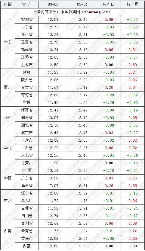 2022年03月05日-中国养猪网生猪(外三元)均价涨跌表