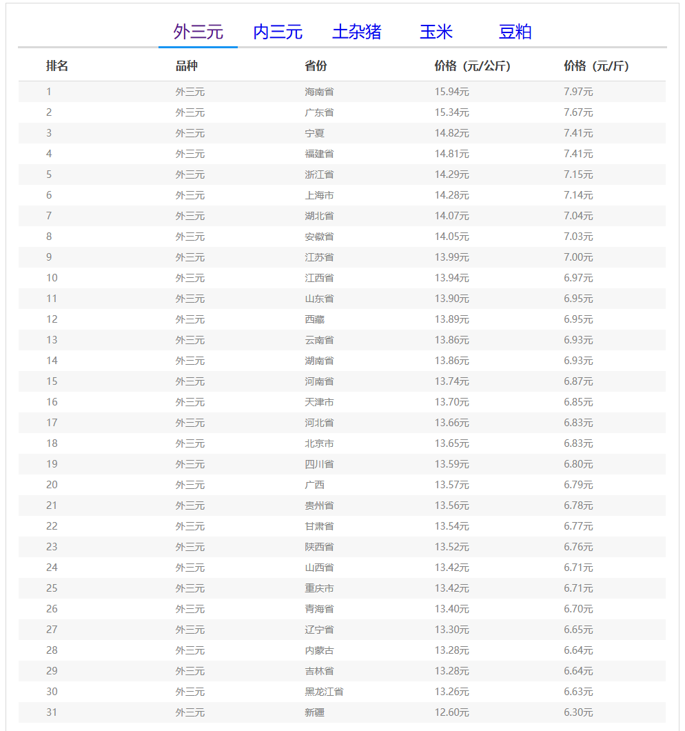 (备注:本文生猪价格及猪价特指活猪价格,并非是消费市场的猪肉价格,外三元、内三元、土杂猪则为生猪品种。)