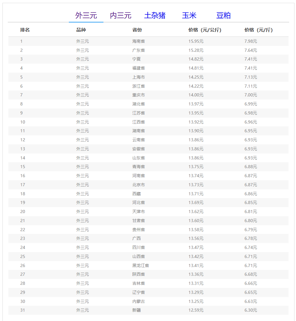(备注:本文生猪价格及猪价特指活猪价格,并非是消费市场的猪肉价格,外三元、内三元、土杂猪则为生猪品种。)