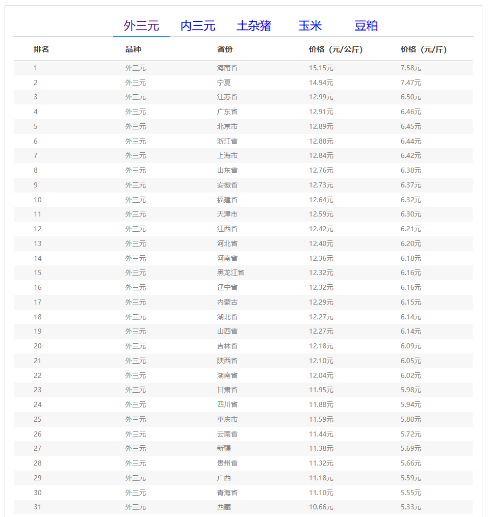 (备注:本文生猪价格及猪价特指活猪价格,并非是消费市场的猪肉价格,外三元、内三元、土杂猪则为生猪品种。)