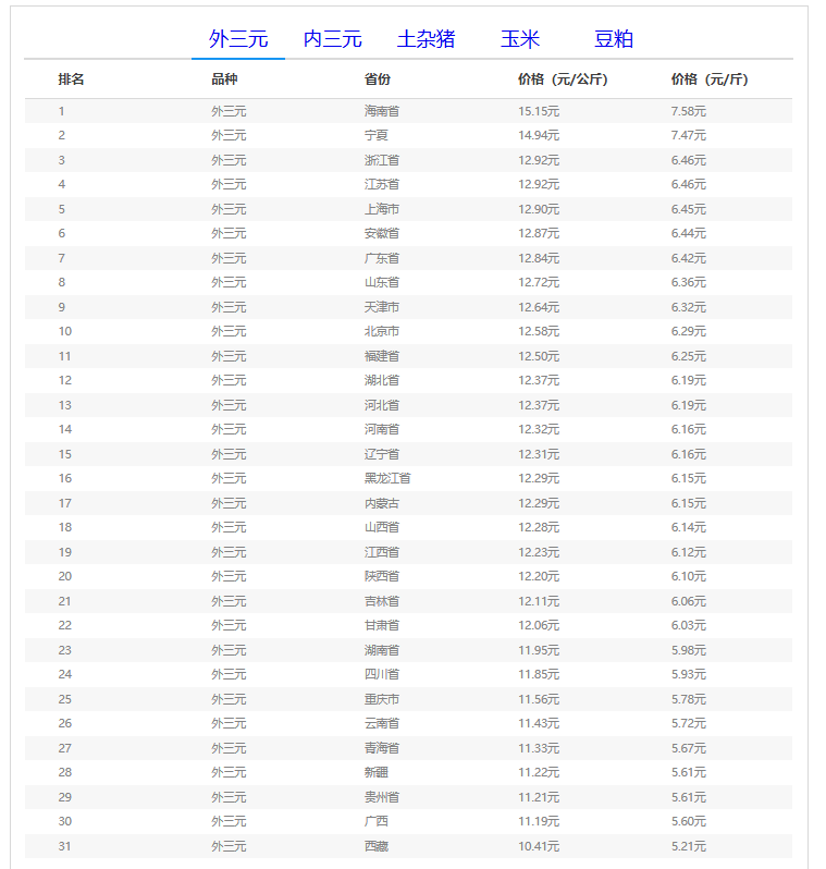 (备注:本文生猪价格及猪价特指活猪价格,并非是消费市场的猪肉价格,外三元、内三元、土杂猪则为生猪品种。)