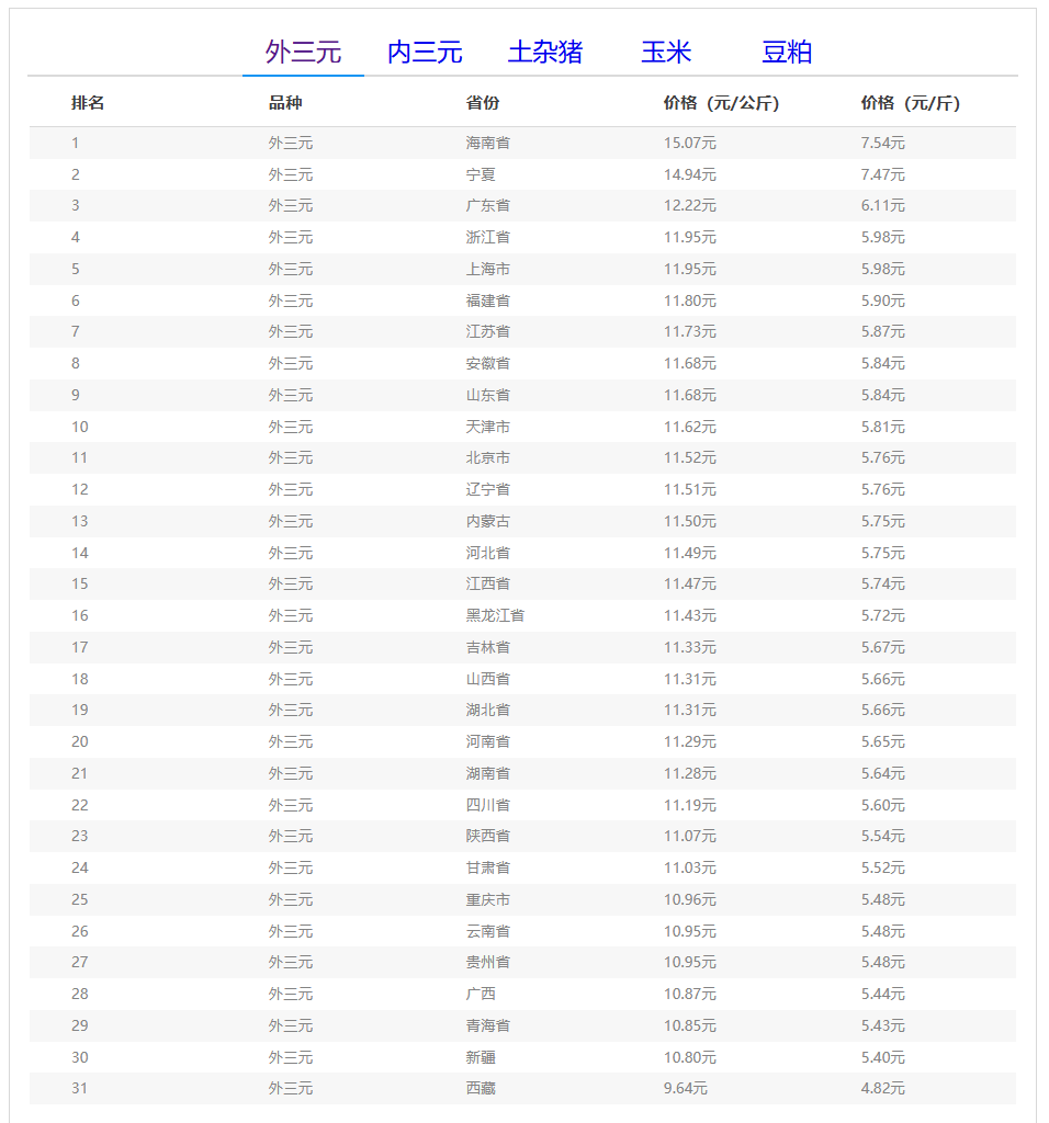 (备注:本文生猪价格及猪价特指活猪价格,并非是消费市场的猪肉价格,外三元、内三元、土杂猪则为生猪品种。)