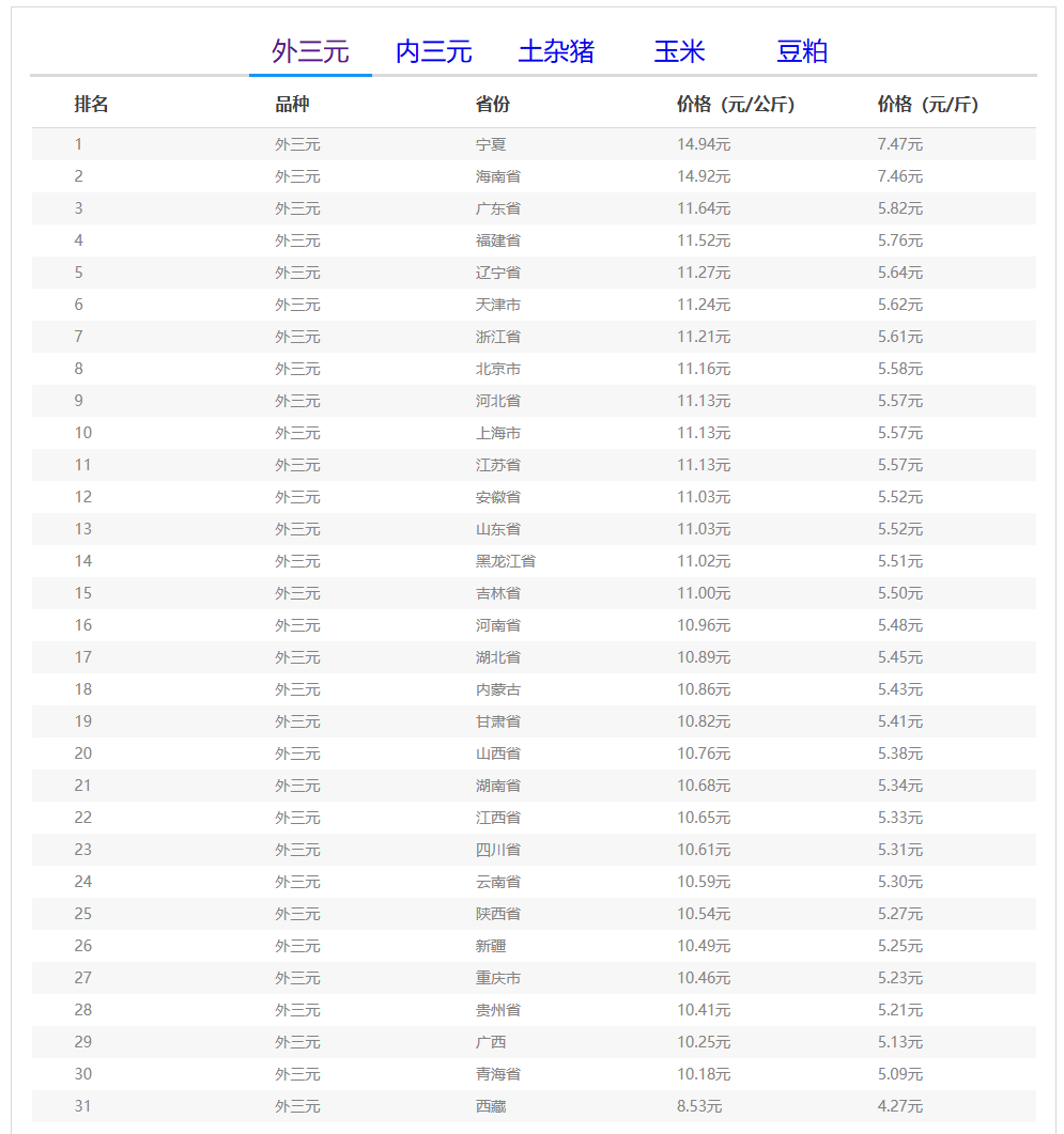 (备注:本文生猪价格及猪价特指活猪价格,并非是消费市场的猪肉价格,外三元、内三元、土杂猪则为生猪品种。)