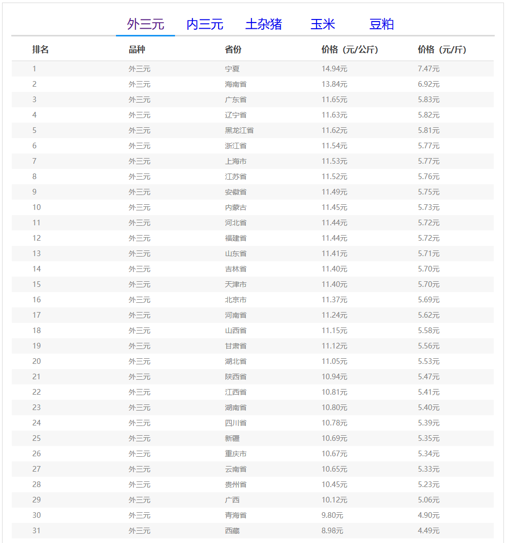 (备注:本文生猪价格及猪价特指活猪价格,并非是消费市场的猪肉价格,外三元、内三元、土杂猪则为生猪品种。)