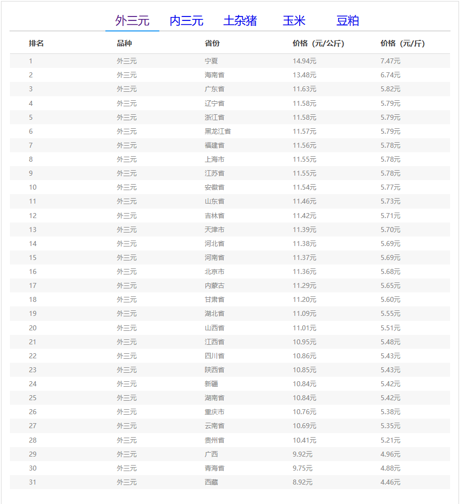(备注:本文生猪价格及猪价特指活猪价格,并非是消费市场的猪肉价格,外三元、内三元、土杂猪则为生猪品种。)