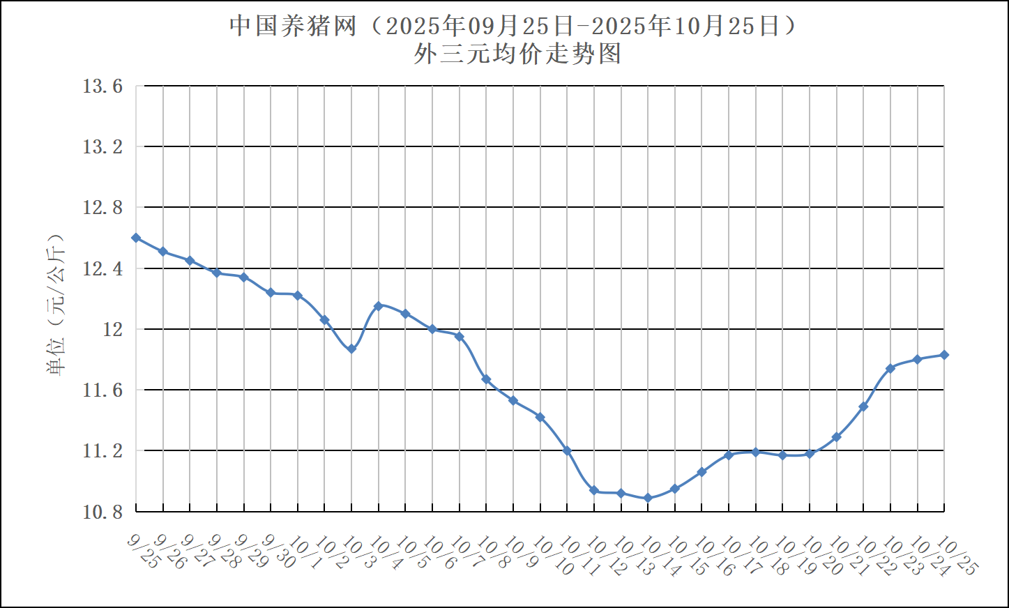 2025年10月25日-中国养猪网生猪(外三元)均价走势图