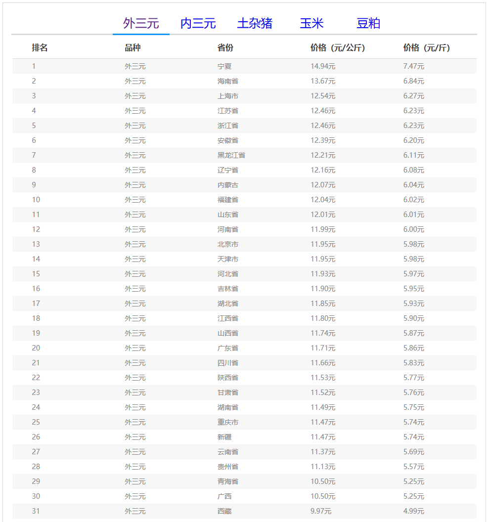 (备注:本文生猪价格及猪价特指活猪价格,并非是消费市场的猪肉价格,外三元、内三元、土杂猪则为生猪品种。)