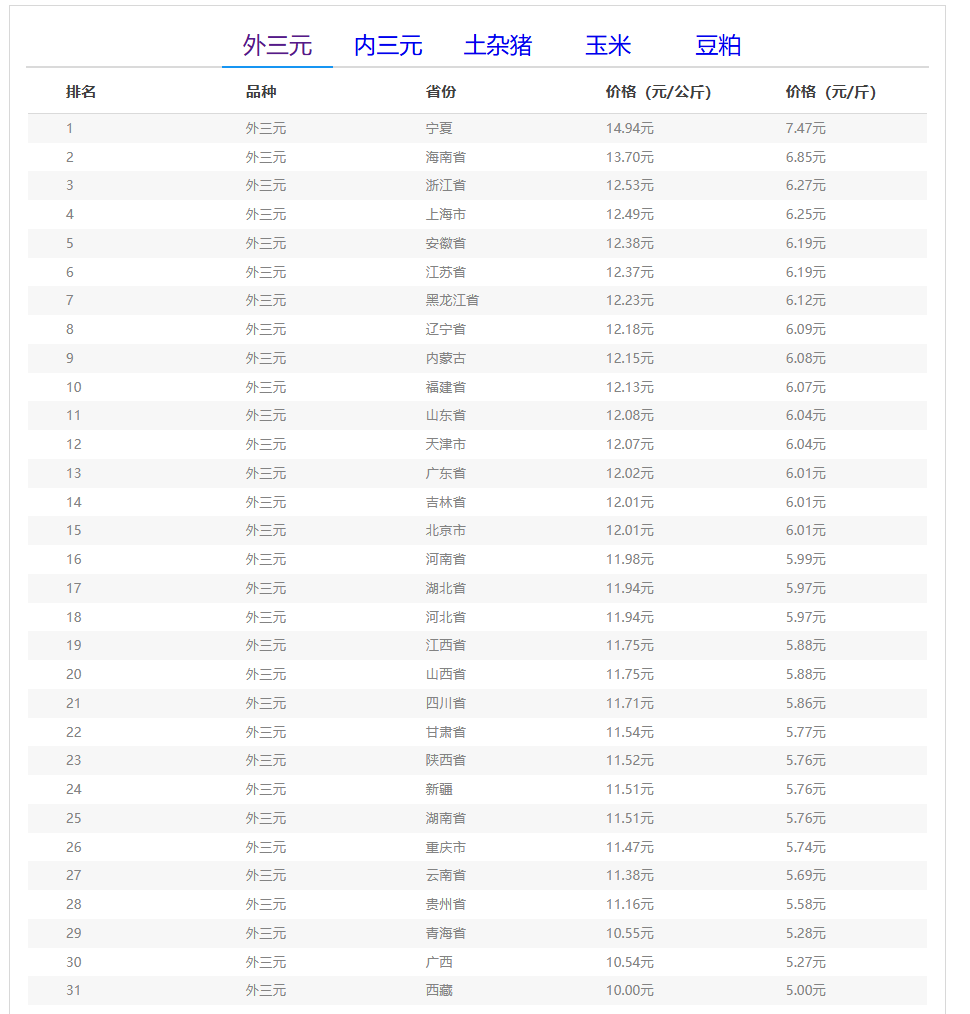 (备注:本文生猪价格及猪价特指活猪价格,并非是消费市场的猪肉价格,外三元、内三元、土杂猪则为生猪品种。)