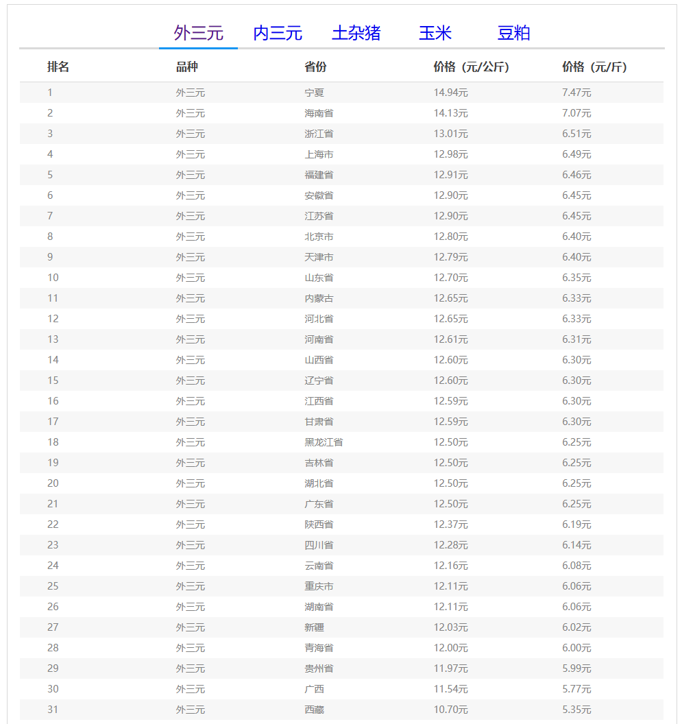 (备注:本文生猪价格及猪价特指活猪价格,并非是消费市场的猪肉价格,外三元、内三元、土杂猪则为生猪品种。)