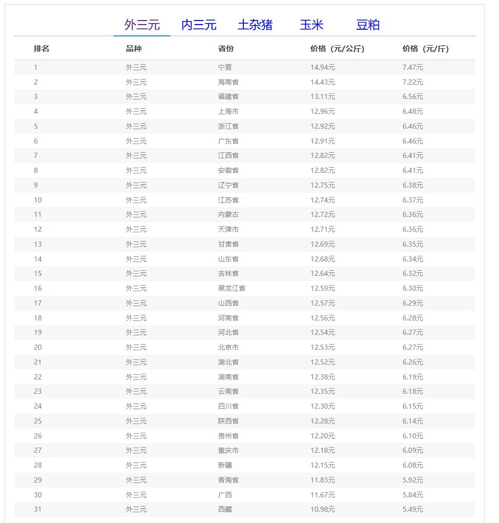 (备注:本文生猪价格及猪价特指活猪价格,并非是消费市场的猪肉价格,外三元、内三元、土杂猪则为生猪品种。)