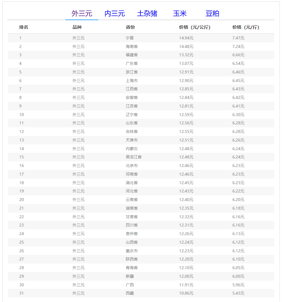 (备注:本文生猪价格及猪价特指活猪价格,并非是消费市场的猪肉价格,外三元、内三元、土杂猪则为生猪品种。)