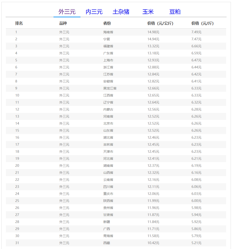 (备注:本文生猪价格及猪价特指活猪价格,并非是消费市场的猪肉价格,外三元、内三元、土杂猪则为生猪品种。)
