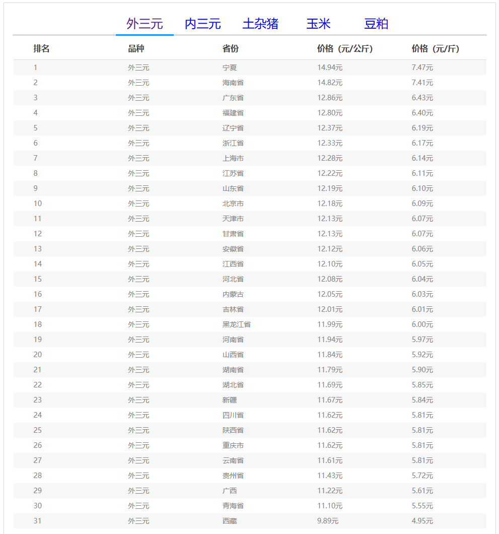 (备注:本文生猪价格及猪价特指活猪价格,并非是消费市场的猪肉价格,外三元、内三元、土杂猪则为生猪品种。)
