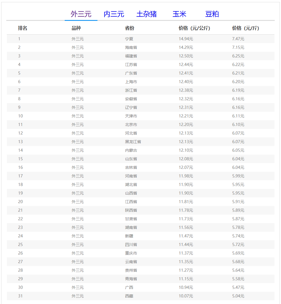 (备注:本文生猪价格及猪价特指活猪价格,并非是消费市场的猪肉价格,外三元、内三元、土杂猪则为生猪品种。)