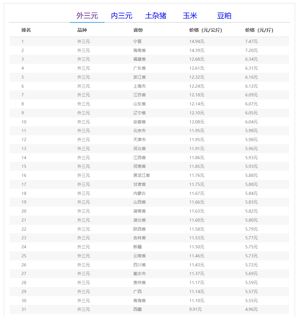 (备注:本文生猪价格及猪价特指活猪价格,并非是消费市场的猪肉价格,外三元、内三元、土杂猪则为生猪品种。)