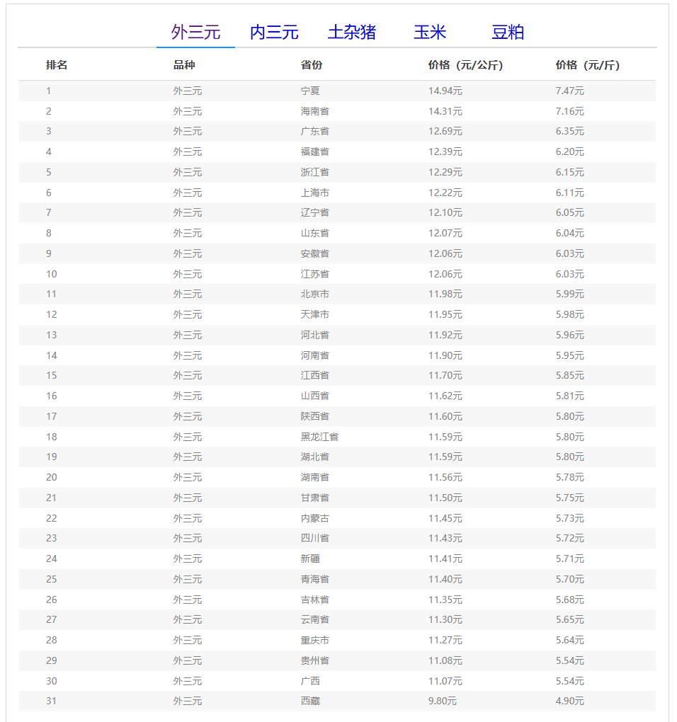 (备注:本文生猪价格及猪价特指活猪价格,并非是消费市场的猪肉价格,外三元、内三元、土杂猪则为生猪品种。)