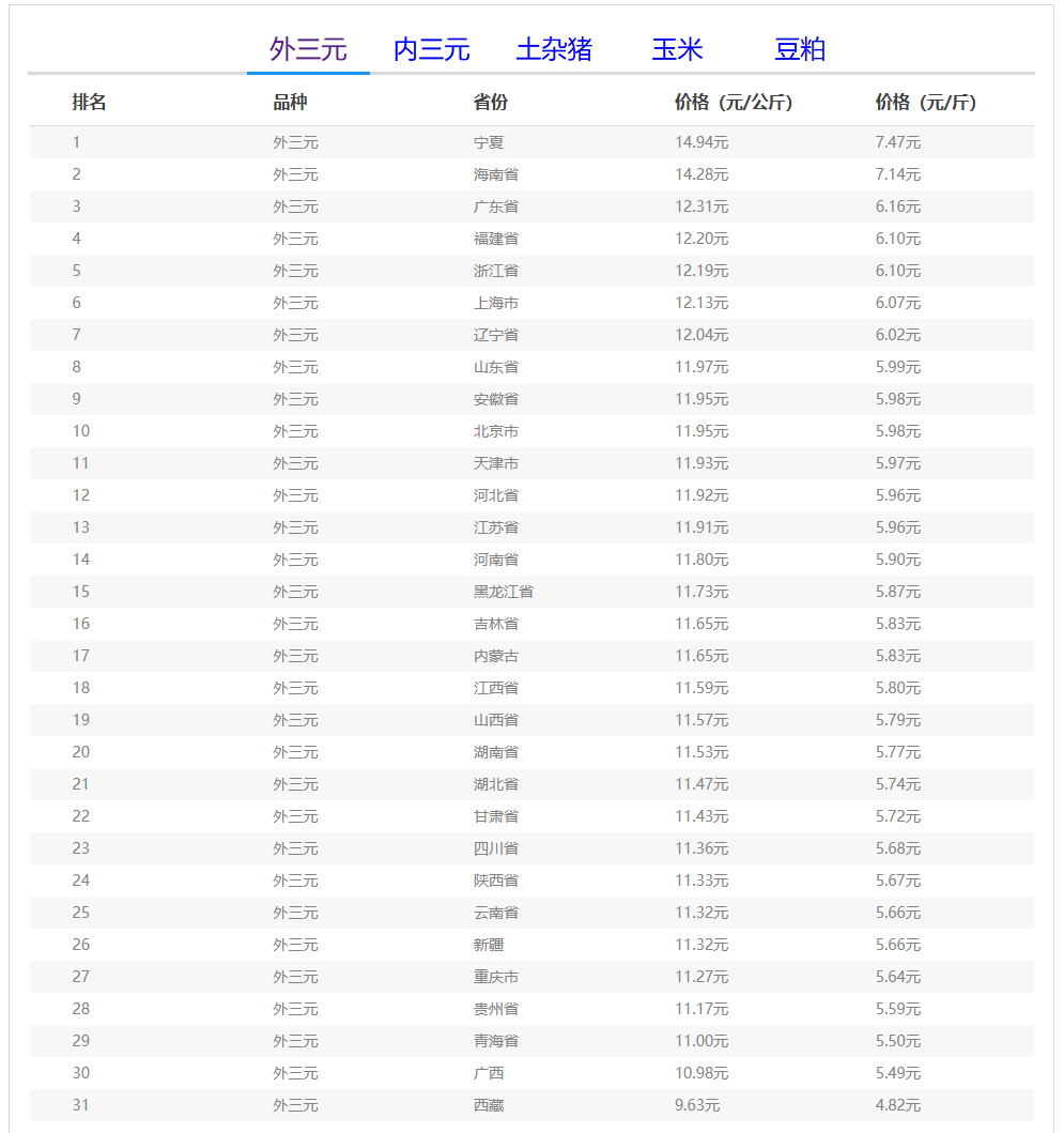 (备注:本文生猪价格及猪价特指活猪价格,并非是消费市场的猪肉价格,外三元、内三元、土杂猪则为生猪品种。)