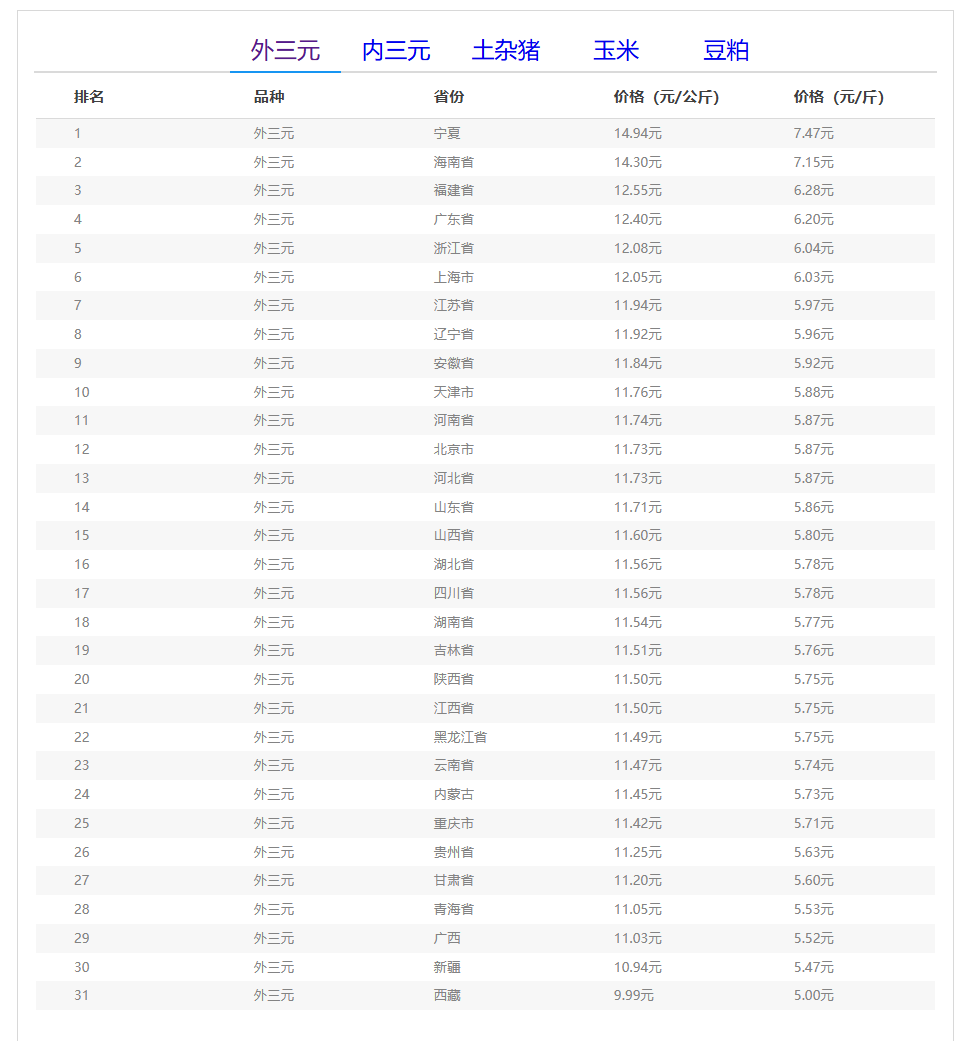 (备注:本文生猪价格及猪价特指活猪价格,并非是消费市场的猪肉价格,外三元、内三元、土杂猪则为生猪品种。)