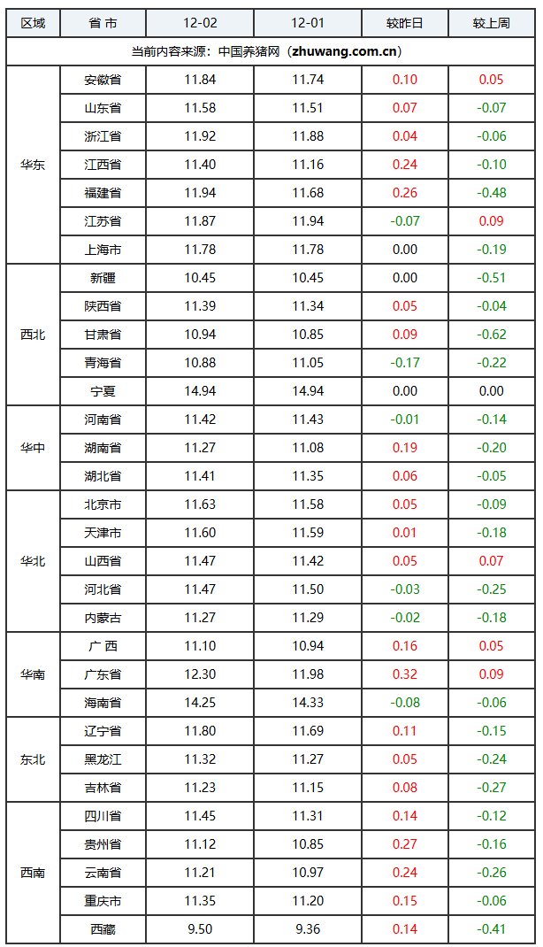 2025年12月02日-中国养猪网生猪(外三元)均价涨跌表