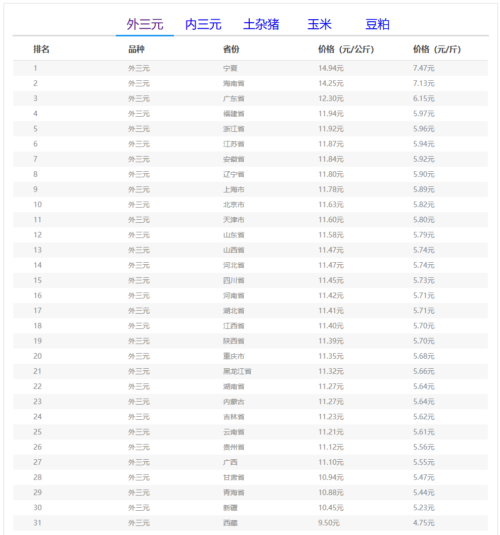 (备注:本文生猪价格及猪价特指活猪价格,并非是消费市场的猪肉价格,外三元、内三元、土杂猪则为生猪品种。)