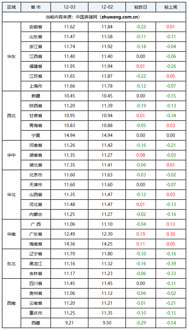 2025年12月03日-中国养猪网生猪(外三元)均价涨跌表