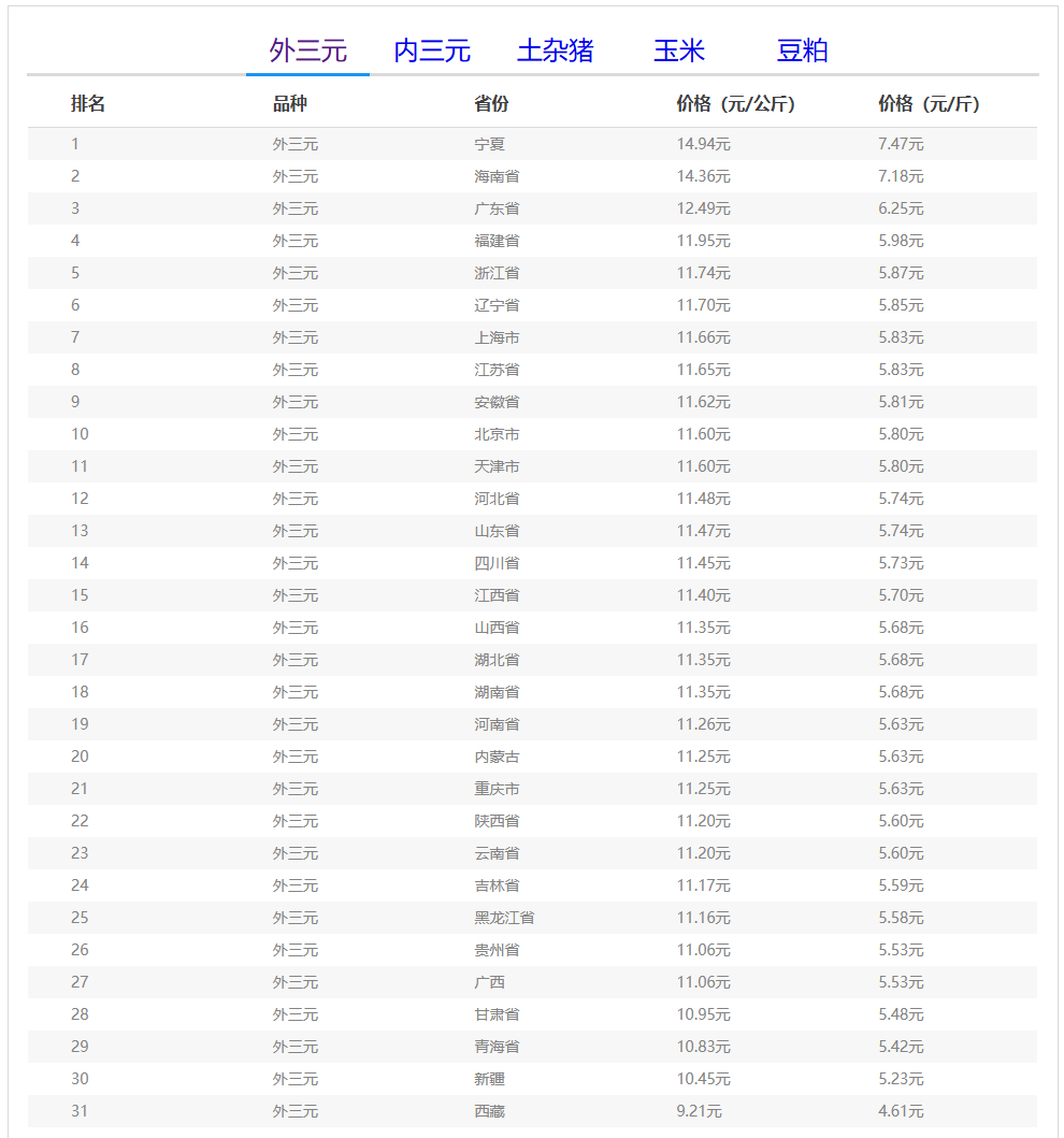 (备注:本文生猪价格及猪价特指活猪价格,并非是消费市场的猪肉价格,外三元、内三元、土杂猪则为生猪品种。)