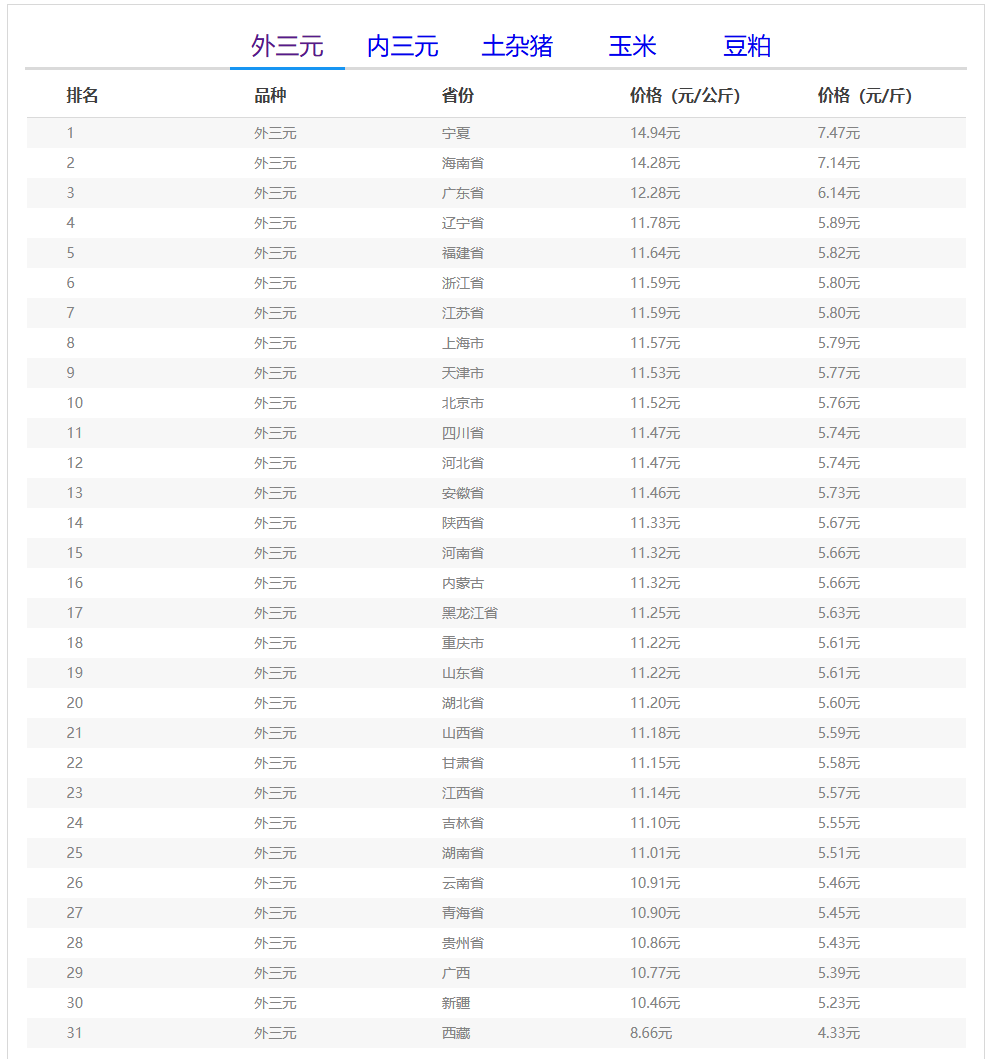 (备注:本文生猪价格及猪价特指活猪价格,并非是消费市场的猪肉价格,外三元、内三元、土杂猪则为生猪品种。)