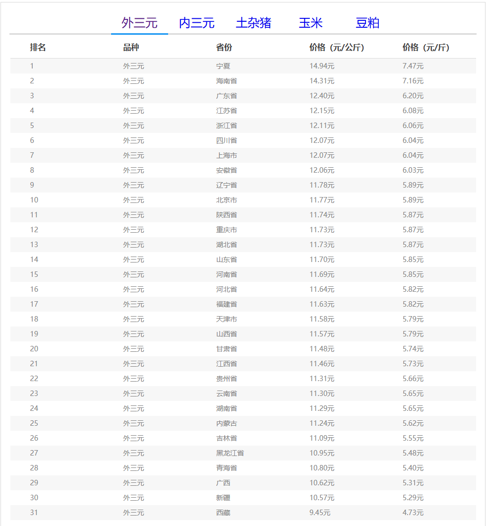 (备注:本文生猪价格及猪价特指活猪价格,并非是消费市场的猪肉价格,外三元、内三元、土杂猪则为生猪品种。)
