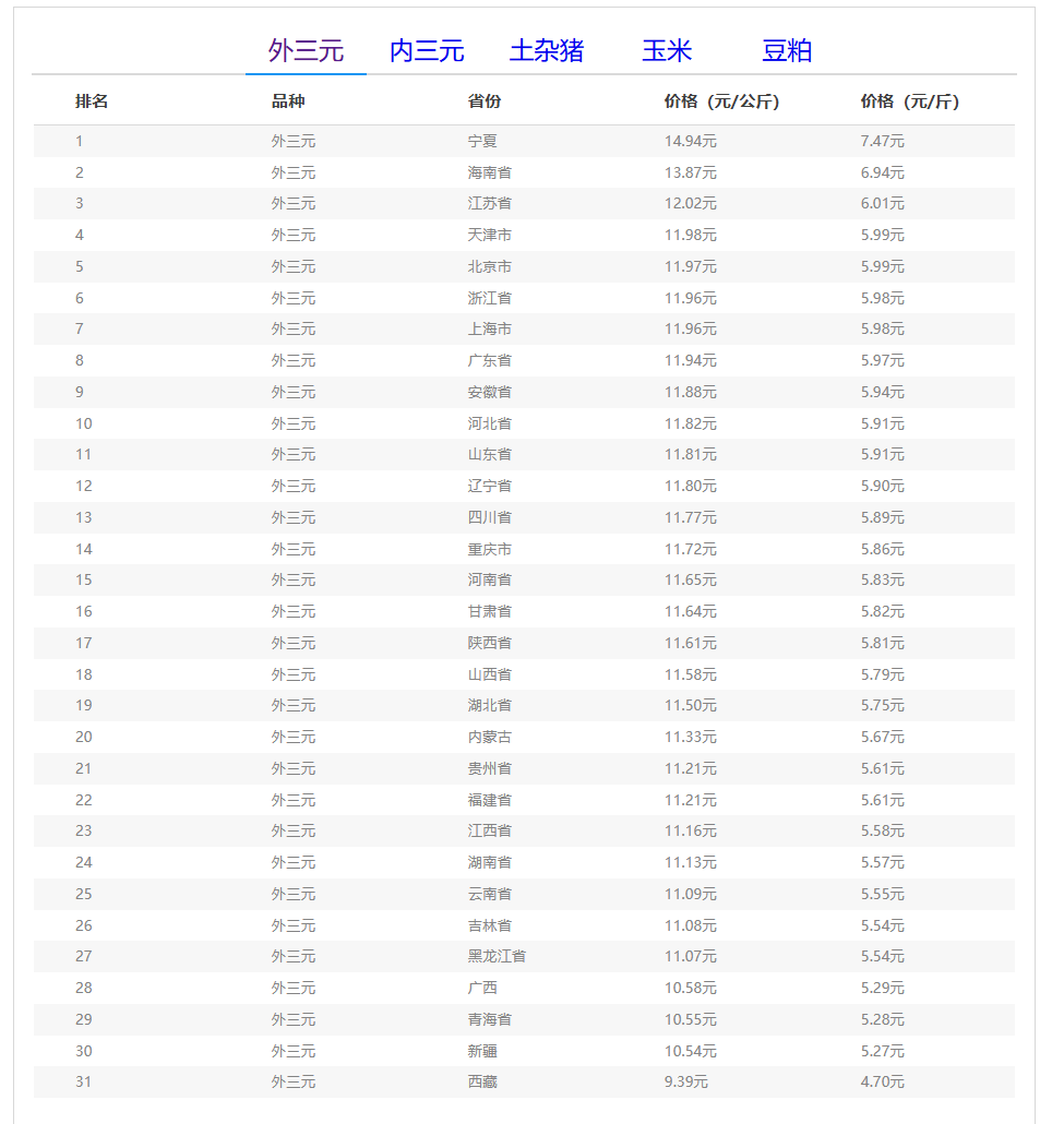 (备注:本文生猪价格及猪价特指活猪价格,并非是消费市场的猪肉价格,外三元、内三元、土杂猪则为生猪品种。)