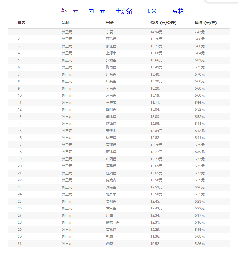 (备注:本文生猪价格及猪价特指活猪价格,并非是消费市场的猪肉价格,外三元、内三元、土杂猪则为生猪品种。)