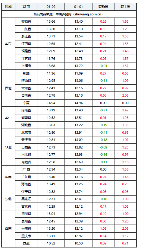 2026年01月02日-中国养猪网生猪(外三元)均价涨跌表