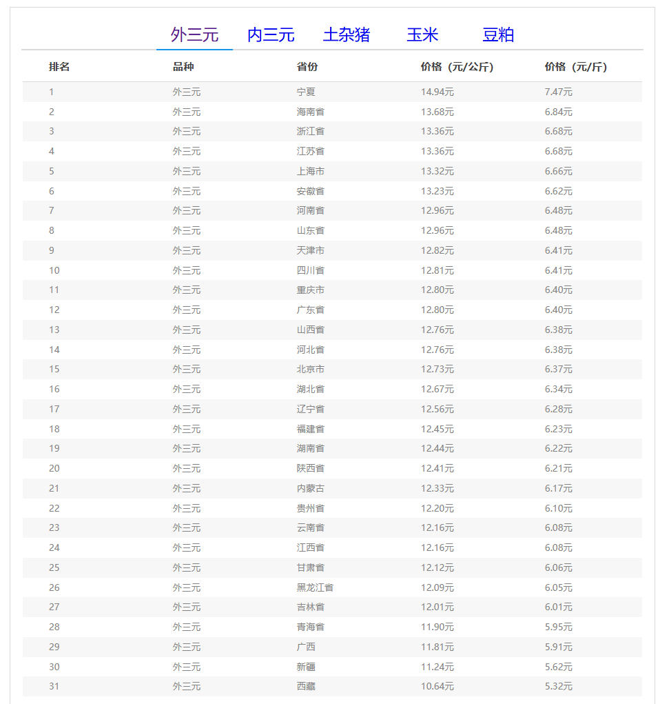 (备注:本文生猪价格及猪价特指活猪价格,并非是消费市场的猪肉价格,外三元、内三元、土杂猪则为生猪品种。)