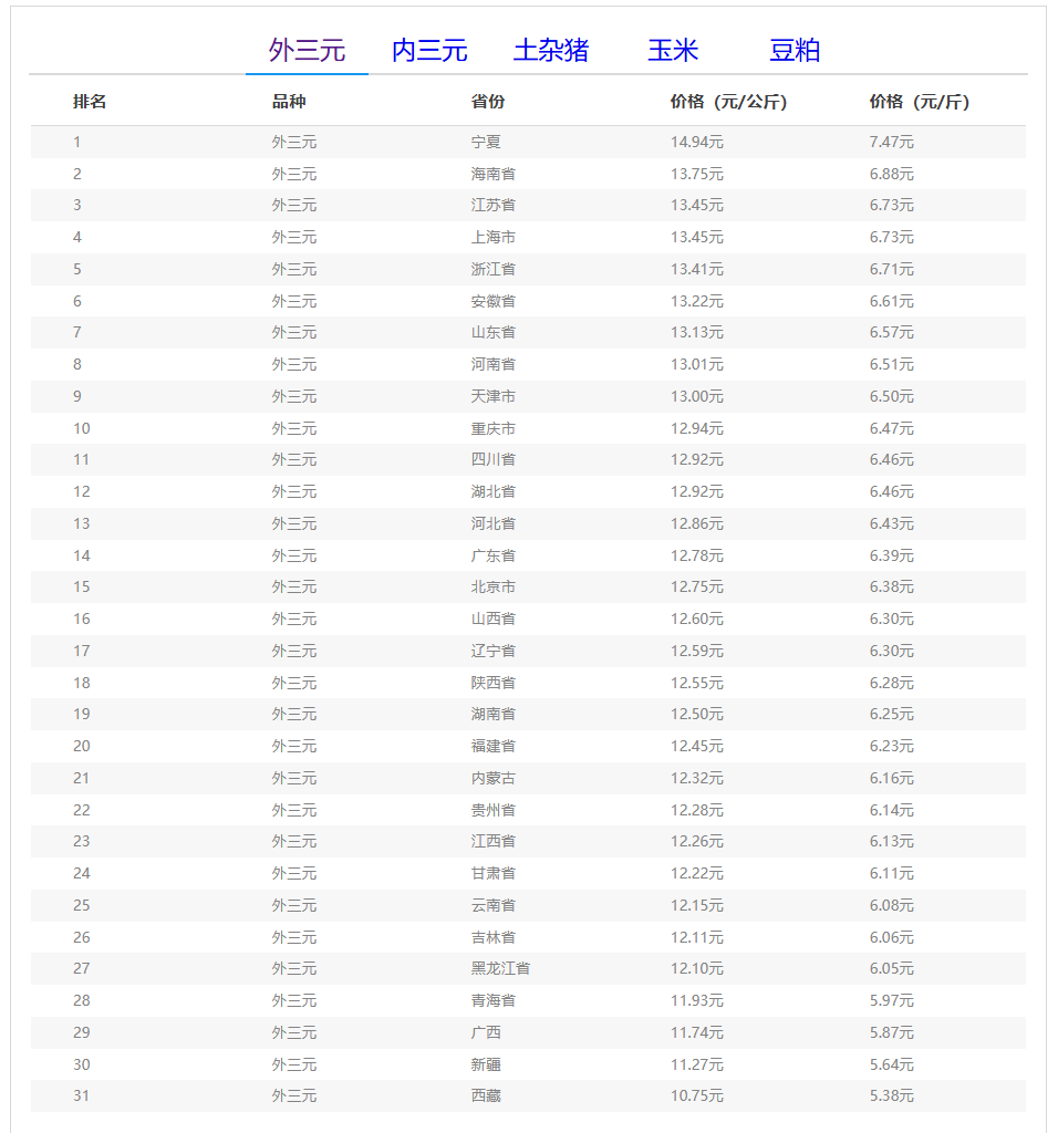 (备注:本文生猪价格及猪价特指活猪价格,并非是消费市场的猪肉价格,外三元、内三元、土杂猪则为生猪品种。)