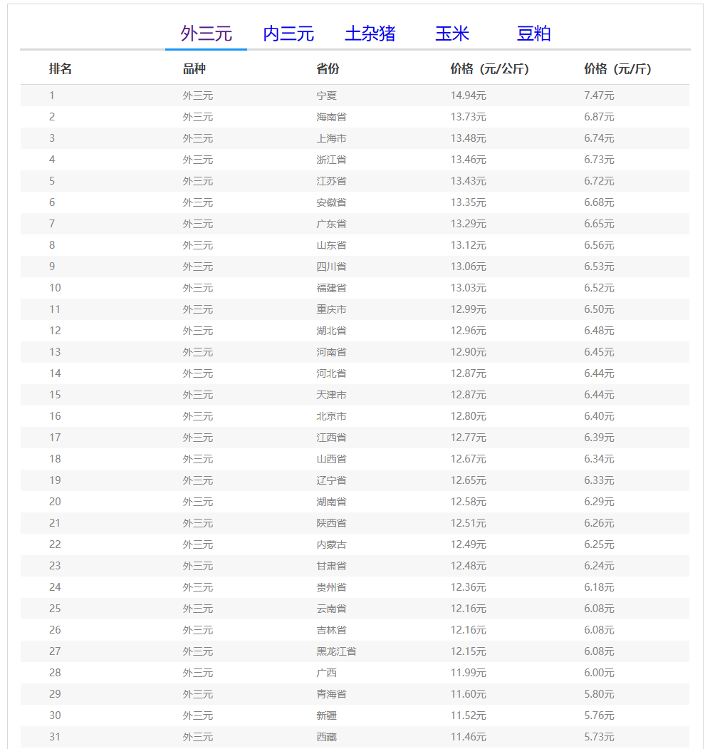 (备注:本文生猪价格及猪价特指活猪价格,并非是消费市场的猪肉价格,外三元、内三元、土杂猪则为生猪品种。)