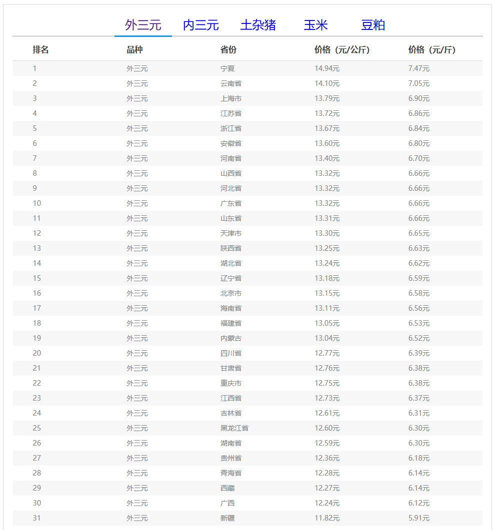 (备注:本文生猪价格及猪价特指活猪价格,并非是消费市场的猪肉价格,外三元、内三元、土杂猪则为生猪品种。)
