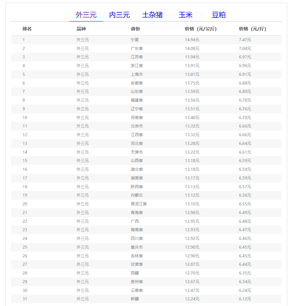 (备注:本文生猪价格及猪价特指活猪价格,并非是消费市场的猪肉价格,外三元、内三元、土杂猪则为生猪品种。)