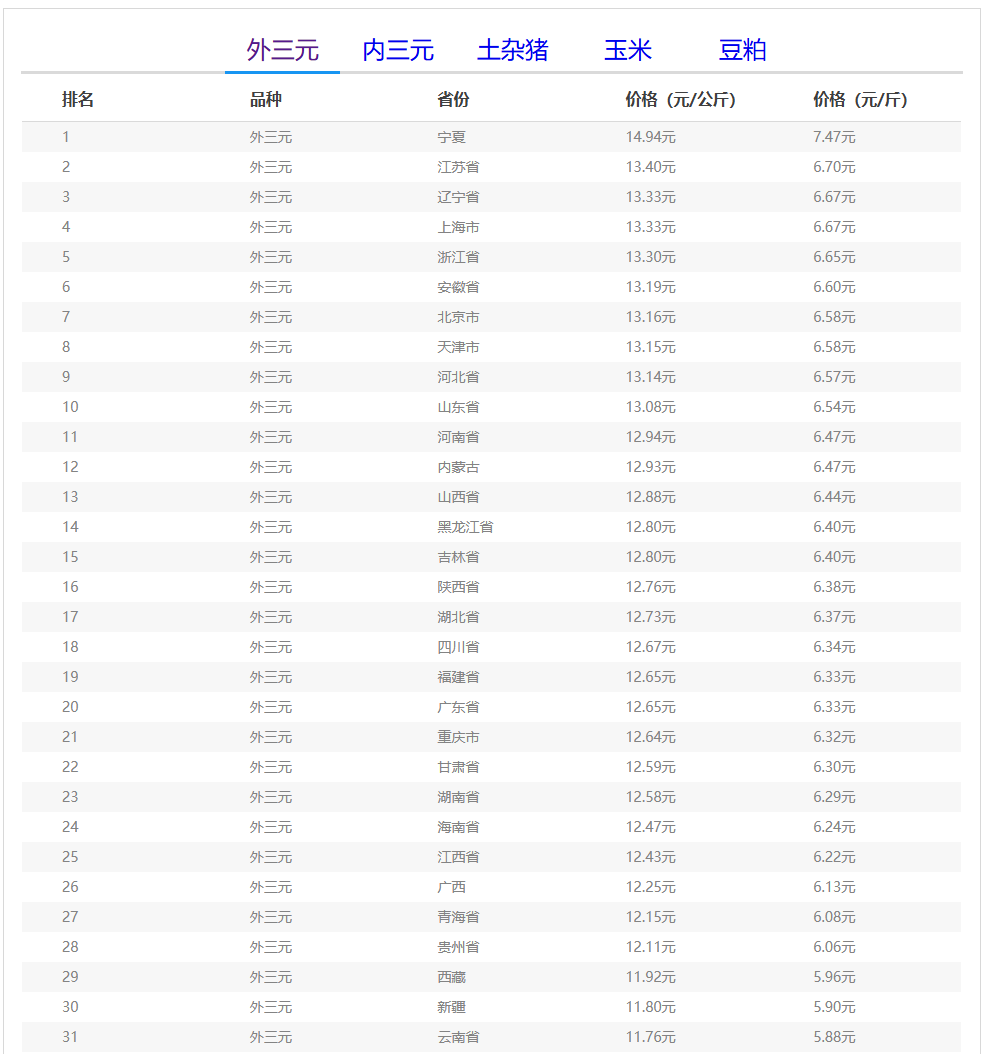 (备注:本文生猪价格及猪价特指活猪价格,并非是消费市场的猪肉价格,外三元、内三元、土杂猪则为生猪品种。)