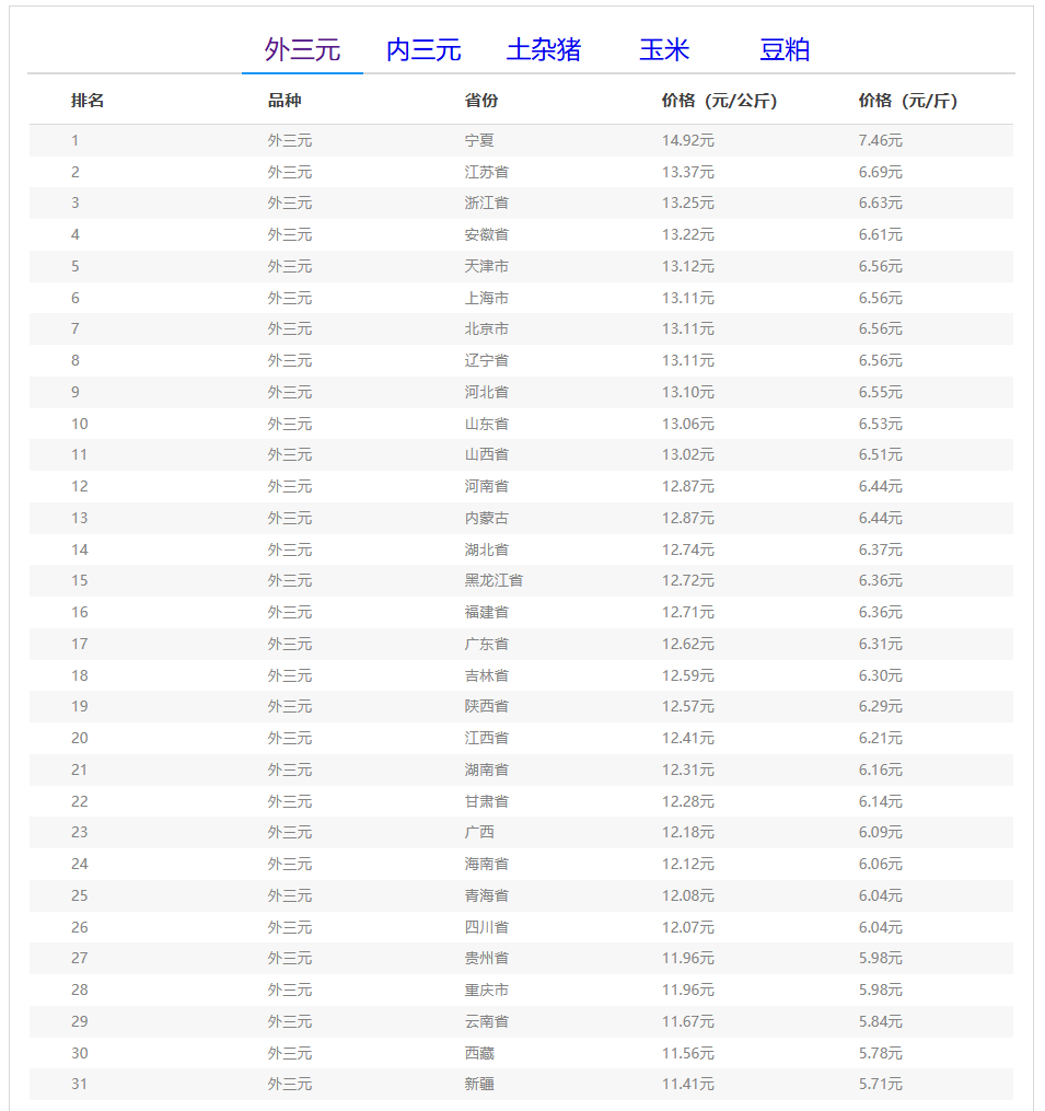 (备注:本文生猪价格及猪价特指活猪价格,并非是消费市场的猪肉价格,外三元、内三元、土杂猪则为生猪品种。)